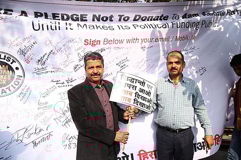 Chanda Bandh Satyagraha alias as no list, no donation, articulates about the financial transparency of Aam Aadmi Party (AAP) fading into oblivion.