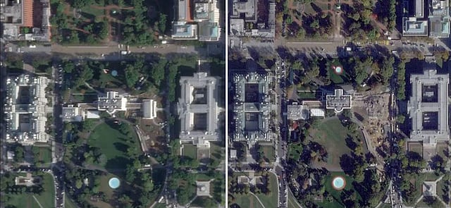 The East Wing of the White House has been left in ruins after a planned demolition to make way for Donald Trump’s new $300 million ballroom. New satellite images released on October 24, 2025, show before-and-after views of the demolition process, in which the East Wing has been completely levelled.