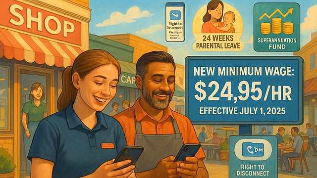 Eligible parents can now access up to 24 weeks of Parental Leave Pay for children born or adopted after July 1, 2025. This leave is paid at the minimum wage rate and includes the new 12% superannuation contributions.