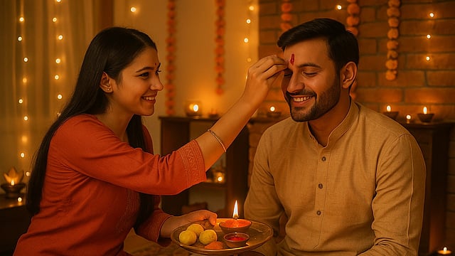 Bhai Dooj celebrates the sacred bond between brothers and sisters through prayers, aarti, and tilak rituals.