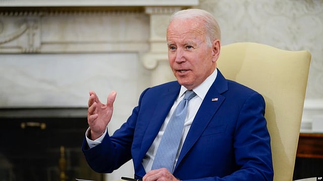 Biden wrote in an opinion piece in The New York Times that the United States has aided Ukraine with weapons and ammunition in order to bolster its position on the battlefield and ultimately in peace negotiations with Russia.