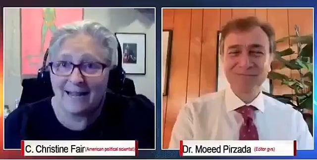 Christine Fair shocked viewers in an interview with Moeed Pirzada by calling Donald Trump “Ch****a.”