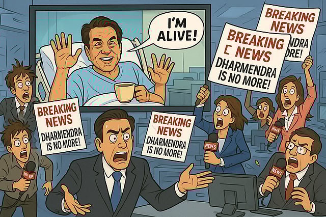 In their hurry to break the scoop, one crucial detail was skipped by all channels — Dharmendra never died. And so began the monumental effort to sweep everything under the rug as if nothing ever happened. The legacy media brought Dharmendra back from the dead instantly, as if it wasn’t their first rodeo. Thus began one of the most unimaginable shenanigans by the legacy media in recent times.