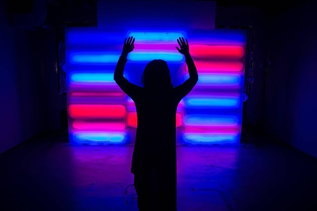 As the intimidating voice of the law orders "Hands up," and a visitor responds, bursts of light simulate gunfire and sounds of explosion ricochet. The viewers are plunged into the virtual reality of split second decisions that become the arbiters of death and life.