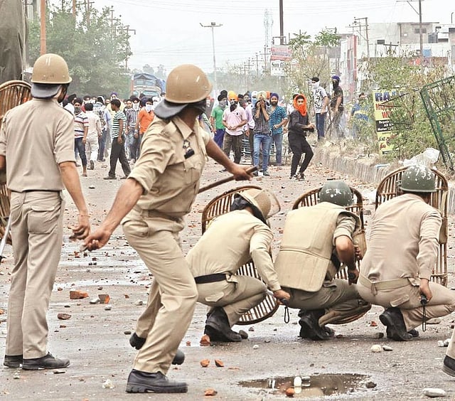 Protestors clashed with police in Buttar Kalan village of Moga district on Tuesday, leaving many injured.