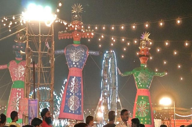 Just when I was ordering a Pav Bhaji, a roaring laughter emerged from the background, 'Raavan hun main, main hun Raavan!'. The show had begun! Expecting a huge crowd, the organizers had arranged close to 10,000 chairs for the audience to witness the extravaganza. Apart from the grand stage, 2 huge projector screens were set up on either sides of the stage to ensure that the visuals reach the entire audience. The other attractions for the visitors at the venue included rides like the Giant wheel and Columbus.