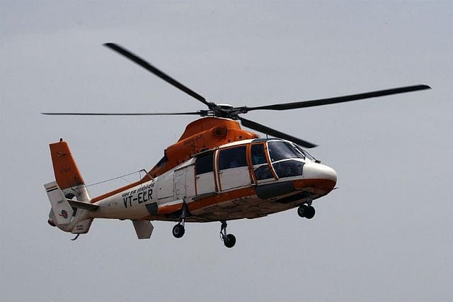 The 14-seater Pawan Hans Dauphin AS 365-N3 had two pilots on board on a night landing training mission. The cause of the crash is yet to be determined.