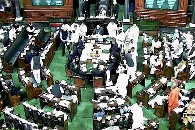 Earlier on Monday, the Lok Sabha saw several adjournments as members of the opposition created a ruckus in the house over the issue that has provoked many writers, intellectuals, actors and artists to return their honours and medals to the government.