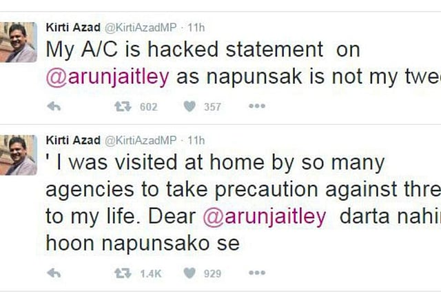 Azad in a controversial tweet alleged threat to his life and warned Finance Minister Arun Jaitley saying that he was not afraid of "impotent" people. However, in an apparent volte-face just one hour after the controversial post, Azad tweeted that his account was "hacked".