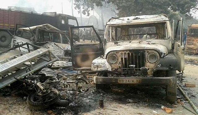 According to reports, protesting against remarks allegedly made to "hurt religious sentiments" in Uttar Pradesh, a large number of people on January 3 went on a rampage in Kaliachak, torching vehicles including those belonging to the Border Security Force (BSF) and also attacked the police station.(IANS) (Picture Courtesy:theweek.in)