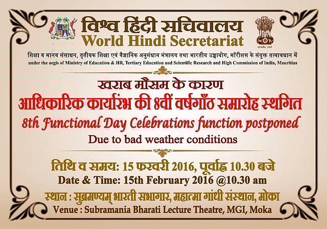 The event was originally scheduled to take place on 11th February but due to prevailing bad weather conditions, it had to be postponed to 15th. World Hindi Secretariat's idea was presented during the 1975 World Hindi Conference in Nagpur by the then Mauritian Prime Minister Sir ShivSagar RamGulam.