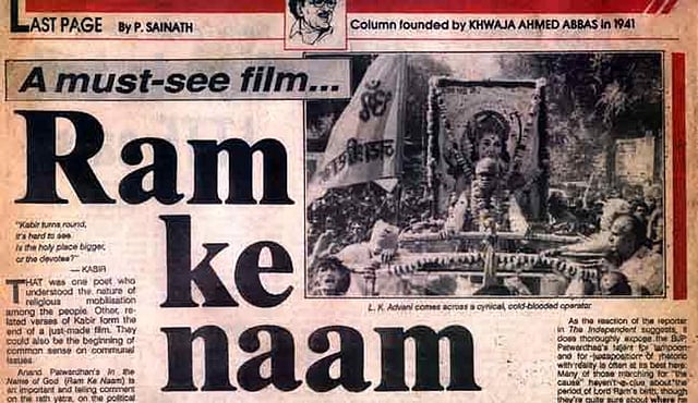 The eminent director, Anand Patwardhan, records his journey of picturising his most controversial movie, "Ram Ke Naam" (In The Name Of God), in a recent article. Produced in 1992, the movie is one amongst the trilogy of the director describing the "rise of religious fundamentalism". First being "Una Mitra Di Yaad Pyaari/ In Memory Of Friends", second is Ram Ke Naam/ In The Name Of God and the final one is "Pitra, Putra aur Dharmayuddha/Father, Son and Holy War".