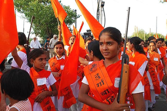Durga Vahini is the female counterpart of the Bajrang Dal, a subsidiary of the Hindu nationalist organisation Vishwa Hindu Parishad (VHP) which was established in 1991. The founding Chairperson of Durga Vahini is Sadhvi Rithambara. Women between the ages of 18 and 35 are allowed to join this camp and trained.