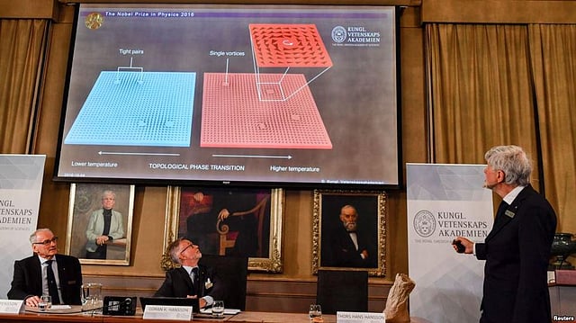"This year's laureates opened the door on an unknown world where matter can assume strange states. They have used advanced mathematical methods to study unusual phases, or states, of matter, such as superconductors, superfluids or thin magnetic films. Thanks to their pioneering work, the hunt is now on for new and exotic phases of matter," The Royal Swedish Academy of Sciences, which hands out the award, said in a statement.