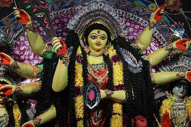 October 27, 2016: The Kanaka Durga temple of Vijayawada witnessed the presence of about 30,000 devotees on Tuesday. The devotees reached in such a large number to get the blessing of the presiding deity who was decorated with a sari with golden border.