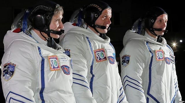 American astronaut Peggy Whitson, Russian cosmonaut Oleg Novitskiy and France's Thomas Pesquet of the European Space Agency blasted off aboard a Russian Soyuz spacecraft Friday morning from Kazakhstan.