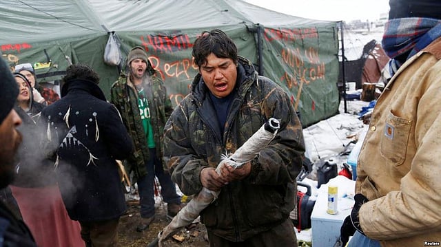 "This fight against the Dakota Access pipeline has been the tip of the spear of a powerful global movement calling for the United States government and Donald Trump to respect indigenous nations and people in our right to water, land, sovereignty, and culture," said Dallas Goldtooth, an organizer with the Indigenous Environmental Network. (VOA)