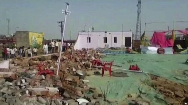 The hundreds of guests were having dinner or assembling on the outdoor lawns when a strong dust storm blew into the area Wednesday night, forcing people on the lawns to go indoors. Then the 80-feet-long (32-meters-long) wall collapsed onto people inside the wedding hall, Bharatpur District Magistrate N.K. Gupta told reporters.