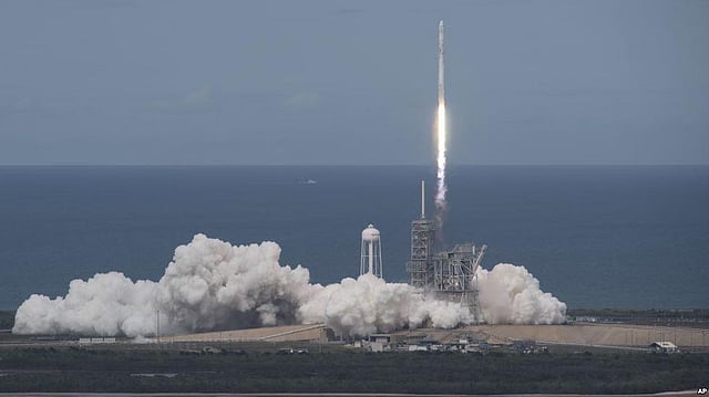 After a two-day delay caused by thunderstorms, the unmanned Falcon rocket blasted off carrying a Dragon capsule that made a station delivery nearly three years ago. When this refurbished Dragon reaches the orbiting lab on Monday, it will be the first returning craft since NASA's now-retired shuttles.