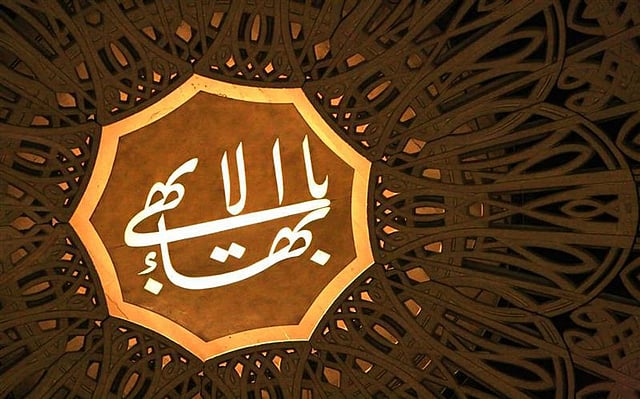 The Baha'i community witnessed this installation of the sacred symbol and offered prayers and devotions during the ceremony.