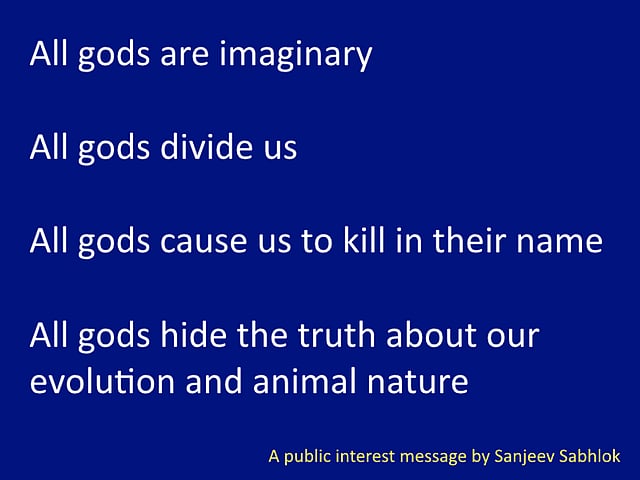 Sabhlok believes that "the day man rejects religion, a semblance of peace may finally come down to earth."