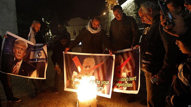 Senior Palestinian leader Nabil Shaath said Trump would no longer be seen as a credible mediator. "The Palestinian Authority does not condone violence, but it may not be able to control the street and prevent a third Palestinian uprising," he said, speaking in Arabic.