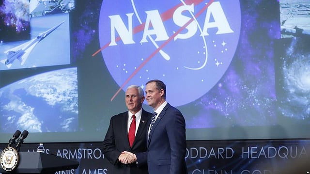 Pence noted that the space agency, under Bridenstine's direction, will work to get astronauts back to the moon and then, with help from commercial space and international partners, on to Mars.