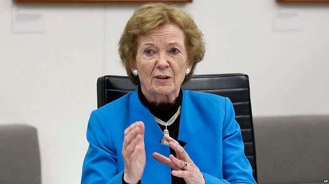 Robinson served as Irish president from 1990-1997 before taking over as the U.N. High Commissioner for Human Rights, and now leads a foundation devoted to climate justice. (VOA)