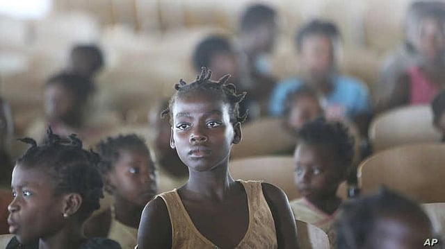 Children queue for food in a camp for people displaced in the aftermath of Cyclone Idai in Beira, Africa. VOA