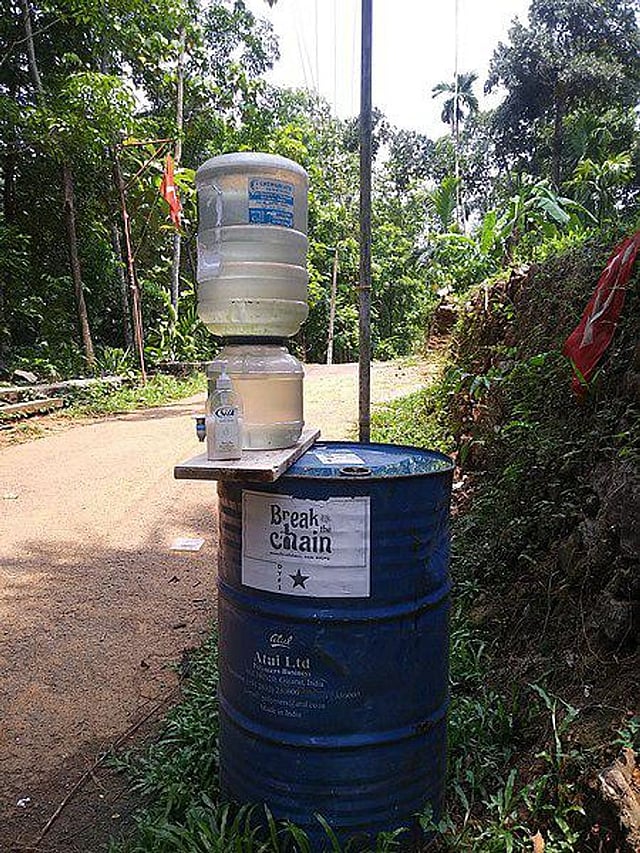 Volunteers packaging essential grocery items for Supplyco, for free distribution during the lockdown period of 2020 coronavirus pandemic in Kerala. Photographed from Chirakkadavu Gramapanchayat town hall. Wikimedia Commons
