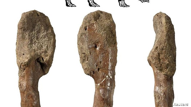 A leg bone from a Centrosaurus was discovered by paleontologists in 1989 in the Canadian province of Alberta. Experts initially believed that the deformed bone had suffered a fracture that healed.