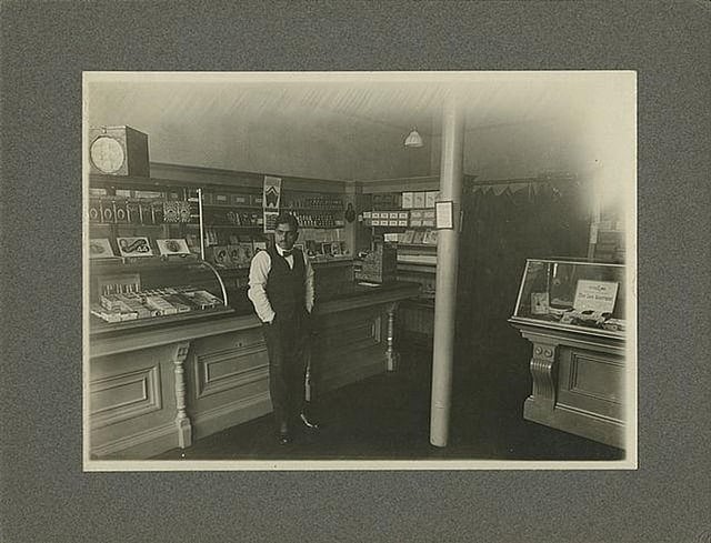 Photograph of Vaishno Das Bagai in his store in San Francisco taken in 1923. Wikimedia Commons