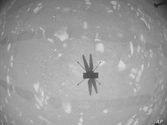 The 1.8-kilogram aircraft arrived on the planet packed away on NASA's Perseverance rover when it landed on Mars in February. Aside from solar batteries, a camera and a transmitter, Ingenuity carries no scientific instruments.(VOA/HP)