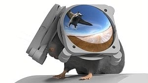 Called Miniature Rodent Stereo Illumination VR (iMRSIV), the system comprises two lenses and two screens — one for each side of the head to separately illuminate each eye for 3D vision.