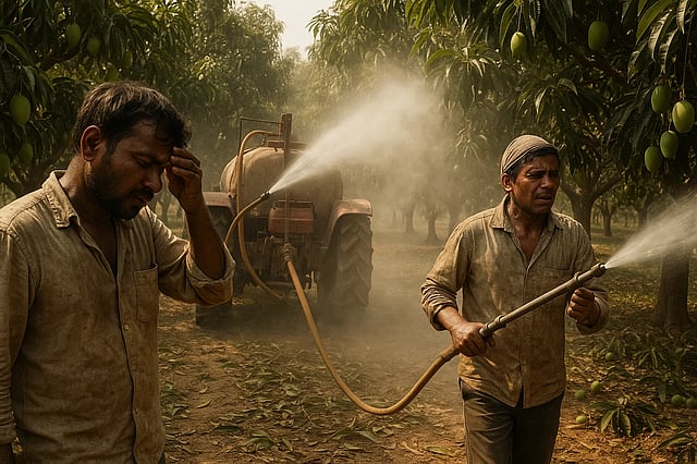 The added risk comes with little reward. Mango pickers earn about Rs 500 a day, while pesticide sprayers get just Rs 100 more. “This year, workers refused to spray unless we paid Rs 600,” said Qadir. “We had no choice but to agree.”