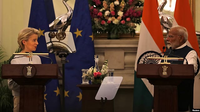 A free trade agreement between the EU and India “would be the largest deal of this kind anywhere in the world,” von der Leyen said. “It is time to be pragmatic and ambitious and to realign our priorities for today’s realities.”
