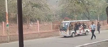 Mathura, March 21 (IANS) President Droupadi Murmu on Saturday performed the 21-kilometre Goverdhan Parvat Parikrama in a golf cart, becoming the first President to visit the sacred town.