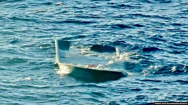 The Greek Navy conducts a rescue operation after a migrant boat capsized off the island of Gavdos, Greece, Dec. 14, 2024, in this still image obtained from a video.