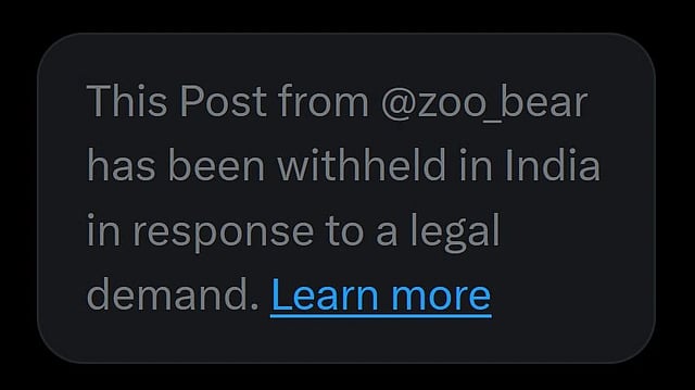 Users attempting to access these accounts saw the message “Account withheld in India in response to a legal demand.”