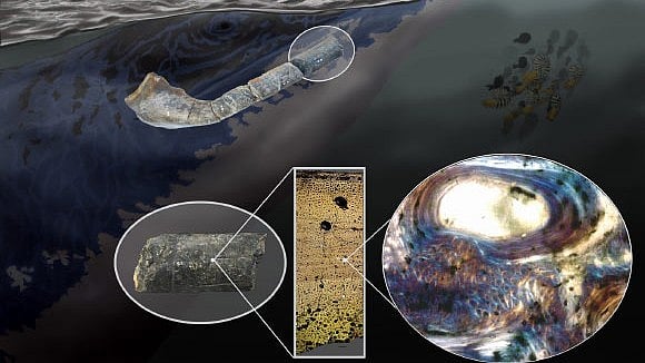 Perillo first took samples from the bones that have so far not been classified. “I compared specimens from South West England, France and Bonenburg,” he says. “They all displayed a very specific combination of properties. This discovery indicated that they might come from the same animal group.” He then used a special microscope to prove that the bone wall had a very unusual structure: It contained long strands of mineralized collagen, a protein fiber, which were interwoven in a characteristic way that had not yet been found in other bones.