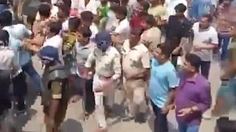AUJP leader Humayun Kabir was met with “Go Back” slogans and called a “BJP agent” by TMC supporters, prompting police lathi charge.