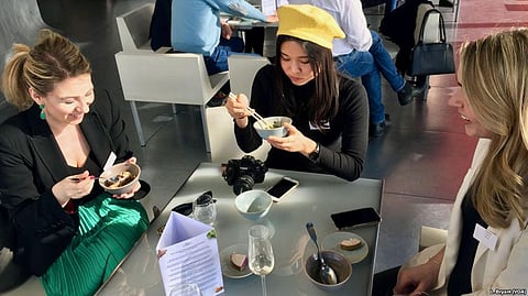 And for diners heading back to work but feeling a bit sleepy after the seven-course tasting menu: A green moringa after-party booster juice was offered. (VOA)