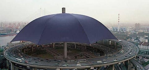 The umbrella, weighing 5.7 tonnes and standing in a plaza, covers a 418 sq.m. area.