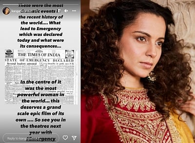 Bollywood actress Kangana Ranaut, who will be seen playing the role of Indira Gandhi in her next film titled 'Emergency', shared a snippet of a news clipping from the day of the Emergency that took place in 1975.