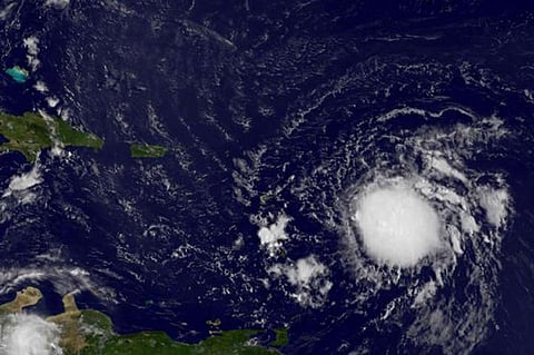 After dumping torrential rain in the eastern Caribbean on Thursday, tropical storm "Erika" is traversing the northeastern Carribean Sea with maximum sustained winds of about 90 km per hour and the National Hurricane Centre has predicted that from the upcoming Sunday to Wednesday, the storm will travel through Florida's peninsula, said an executive order by the governor.
