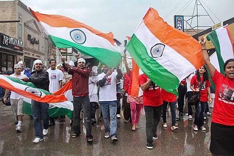 Later in the day, many Indian-Americans in Indian national flag-coloured costumes gathered in Rockefeller Gardens for more celebrations.