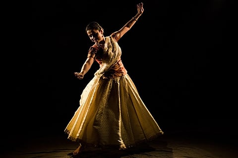 'Kathak', the word is derived from Katha, which means a story. It is a dance form which revolves around a theme where the person uses mime and gestures to narrate a tale. The core characteristic of this dance form is that the performing artist role plays and imitates the story with the help of dance movements, expression and gestures.
