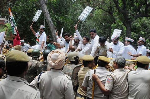 The protest also followed comments by senior Congress leaders critical of the Delhi government's handling of the dengue outbreak in the national capital.