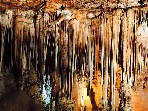 The stalactites (grow from the top) the ceiling formations – grow long enough to connect with stalagmites (formation on the floor), they join to form columns.