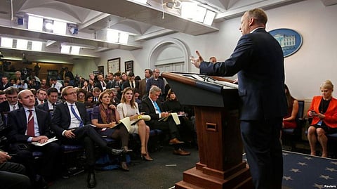 In the Trump White House, however, it has frequently turned into a test of wills. Spicer daily finds himself on the defensive, called on to explain the president's controversial tweets. He has no reluctance to turn the tables on the media, slamming journalists and accusing them of "deliberately false reporting."